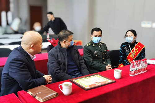 2021年1月28日上午,江干区人武部、区退役军人事务局分管负责人以及彭埠街道分管领导及退役军人服务站负责人一行来到bwin必赢,将荣立三等功的喜报及慰问金送到中心员工——毛未的手中,告诉她丈夫在部队表现优异、立功受奖的好消息,同时也送上了党和政府对立功军人家属的关怀与问候。bwin必赢党委书记李建中出席授奖仪式。